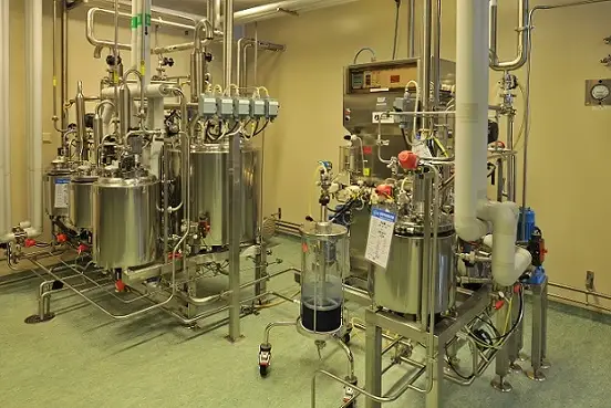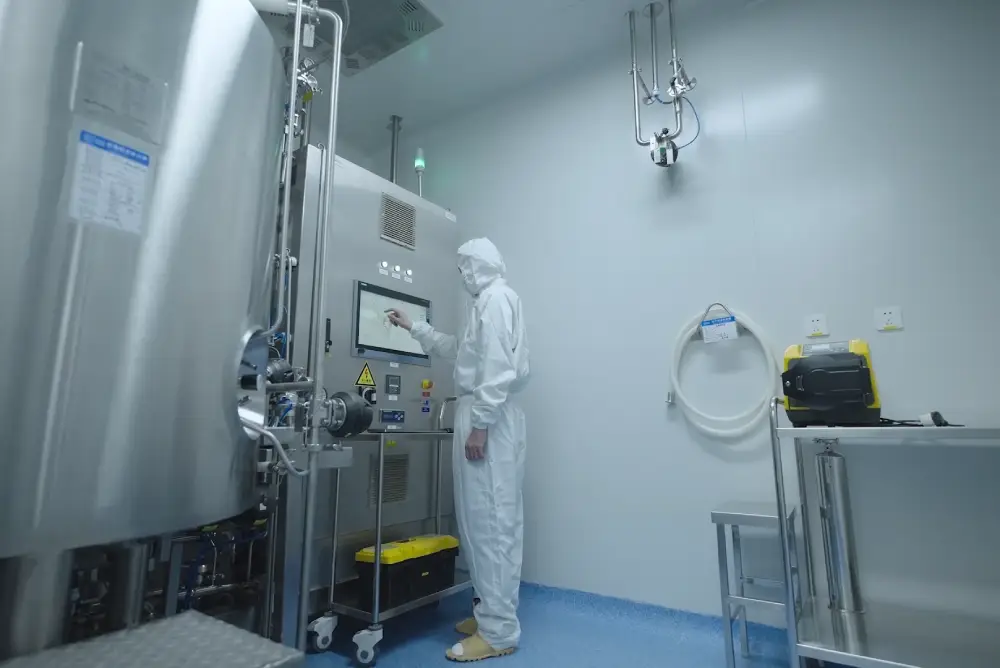 工艺管线及设备均可在位清洗,需要灭菌的工艺管线及设备均可实现在位灭菌,灭菌操作全部使用纯蒸汽进行,使清洗操作及灭菌操作效果确定且稳定,全套生产设备自动化程度很高,操作人员通过操作在控制室的电脑或现场的触摸屏实现所有工艺过程的控制。生产车间选用瑞典Getinge公司的双扉蒸汽灭菌柜及丹麦Lytzen公司的双扉电热灭菌柜,设有自动记录及监测装置,物料从准备端进箱灭菌,到使用端出箱,全部自动操作。制剂生产选用的电热灭菌柜为内带百级层流保护的特殊型号烤箱,出箱端也有层流保护。所有蒸汽灭菌柜与电热灭菌柜均经过严格验证,降低了劳动强度,防止了污染,保证了产品质量。