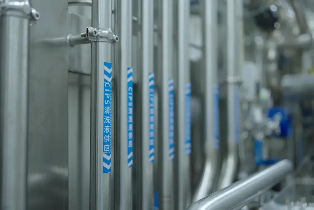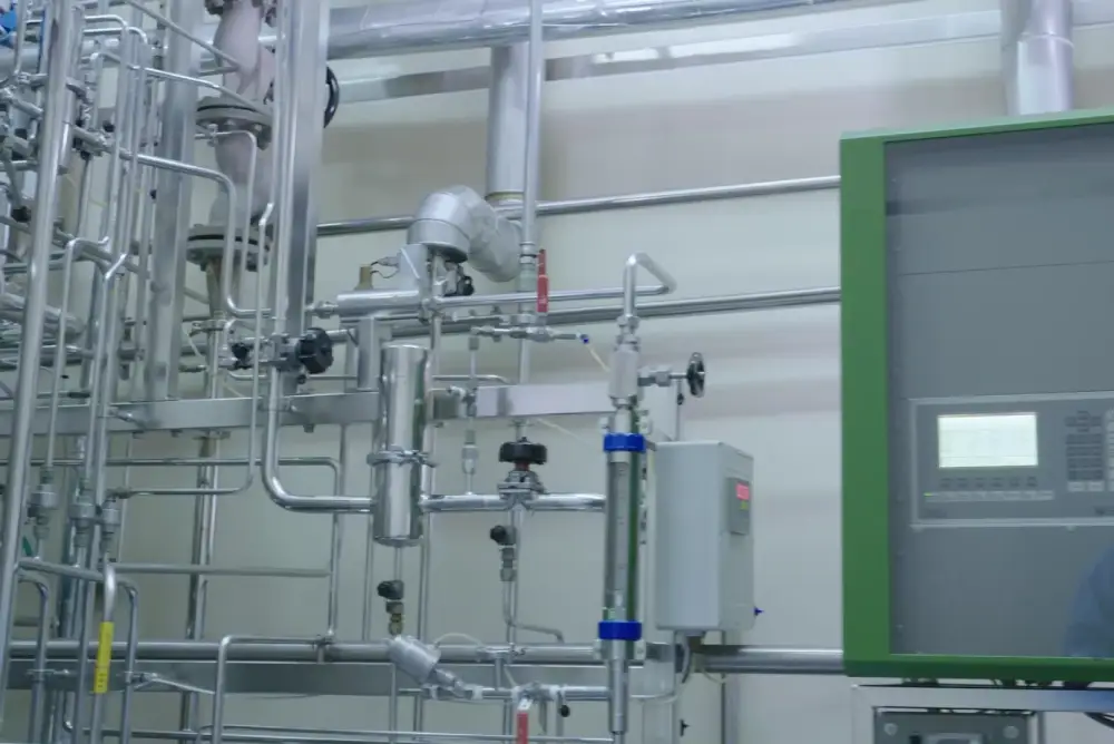 生产物料通过工艺管线密闭传输,避免敞口操作,与外界及操作人员无任何接触,实现了工艺生产的管道化。凡是与产品相接触的材质均为进口优质316L不锈钢,管道与储罐内外壁均作抛光处理,设备表面平整、光洁,不与产品发生化学反应,并无吸附作用,易于清洁消毒,耐腐蚀。管道设计安装时有一定的倾斜度,避免了管内物料的积存。