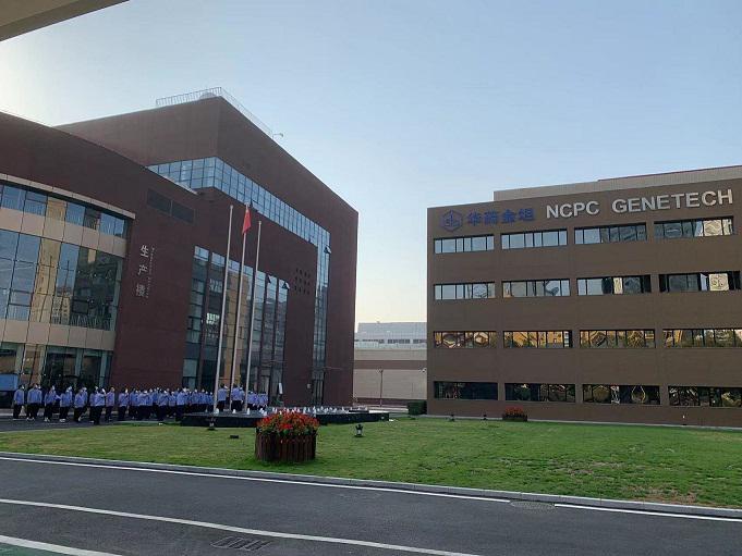 公司党委委员、领导班子成员和职工代表列队成排,统一着装,佩戴蓝色口罩,上身穿浅蓝色工装,党员佩戴党徽,保持良好精神状态,整齐划一的员工队伍展现出金坦人的昂扬斗志和爱国情怀。